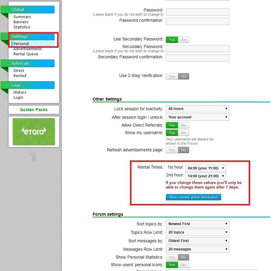 Personal Settings — Rental Times. Подробнее все это расписано тут. https://easydollars.ru/neobux-lichnyj-kabinet/. Ну и скриншот еще —