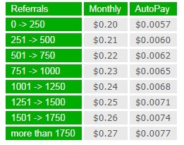 Цена арендованного реферала. Минимальная стоимость реферала 20 центов. Но, когда у вас их будет больше 250 шт, то 251-ый уже будет стоить 21 цент, 501-ый — 22 цента и т.п. Ниже табличка с ценами. Это касается и автоматического продления (AutoPay) речь о котором пойдет ниже.